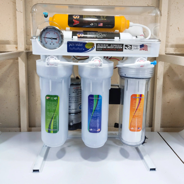 تصفیه آب پیور واتر کاور دار شاسی فلز ضد زنگ مخزن 4 گالن آنتی باکتریال پمپ هیدون تایوان فیلتر ممبران 13 لایه فلیمتک شیربرداشت وارداتی نیمه اهرمی 24 ماه گارانتی بی قید و شرط ده سال خدمات پس از فروش