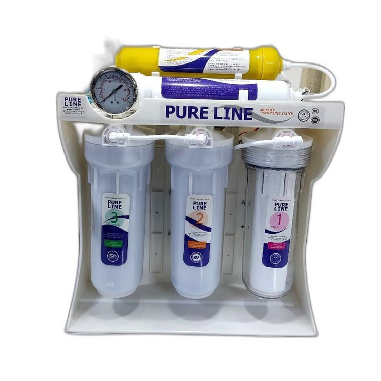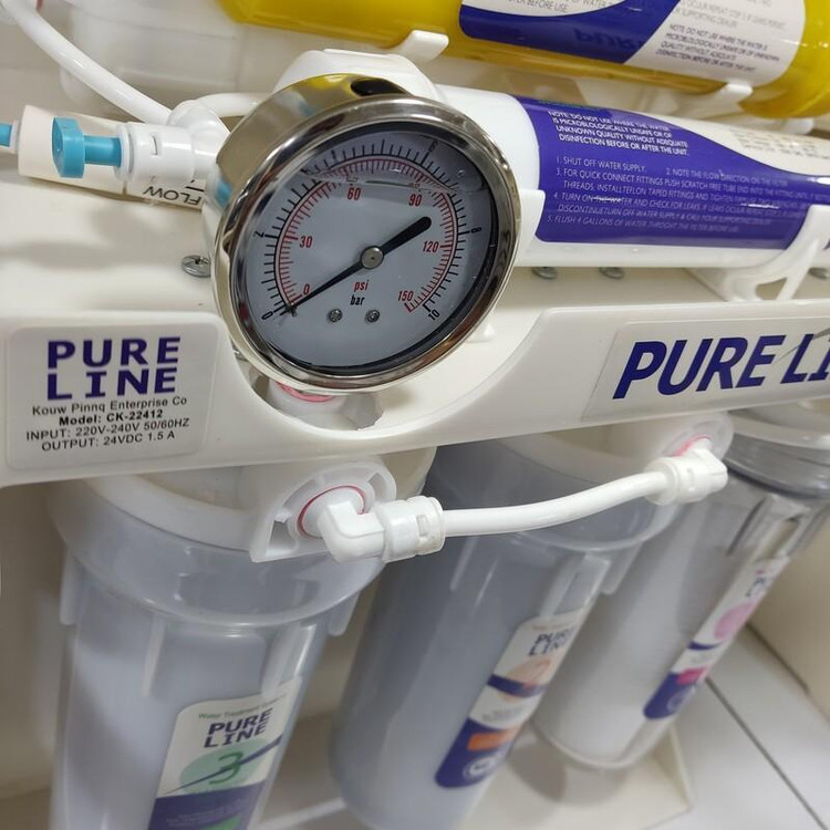 تصفیه آب پیور لاین 6 مرحله با متریال وارداتی پمپ لیفو وارداتی اتصالات تکومن تایوان مخزن 4 گالن آنتی باکتریال شیر نیمه اهرمی وارداتی ٢۴ ماه گارانتی
